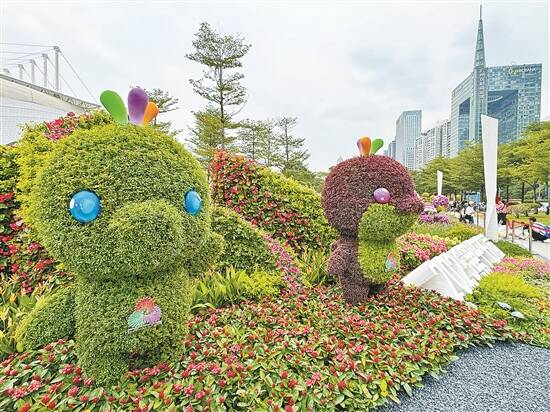 这里汇聚了广州各区的匠心展园,步入园中,一幅幅地域画卷徐徐展开:南沙园将滨海风情“搬”到眼前;荔湾园的巨型凤冠艺术装置,把粤剧的华彩“定格”于公共空间;番禺园以榕树为主题,满眼绿意与大夫山森林公园的生态成果遥相呼应……
