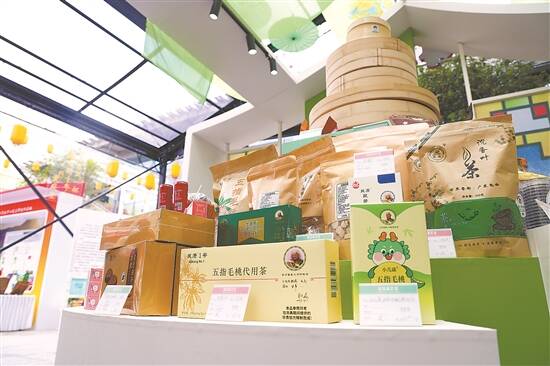 绿美广东“粤林+”林产品展示活动现场热闹非凡,广东林业特色生态产品集中亮相,吸引众多参观者互动体验。展台上,化橘红果散发醇厚药香,沉香茶木质芬芳沁人心脾;五指毛桃的椰香唤醒煲汤记忆,魔芋制品脆嫩低卡,让试吃区人气爆棚。
