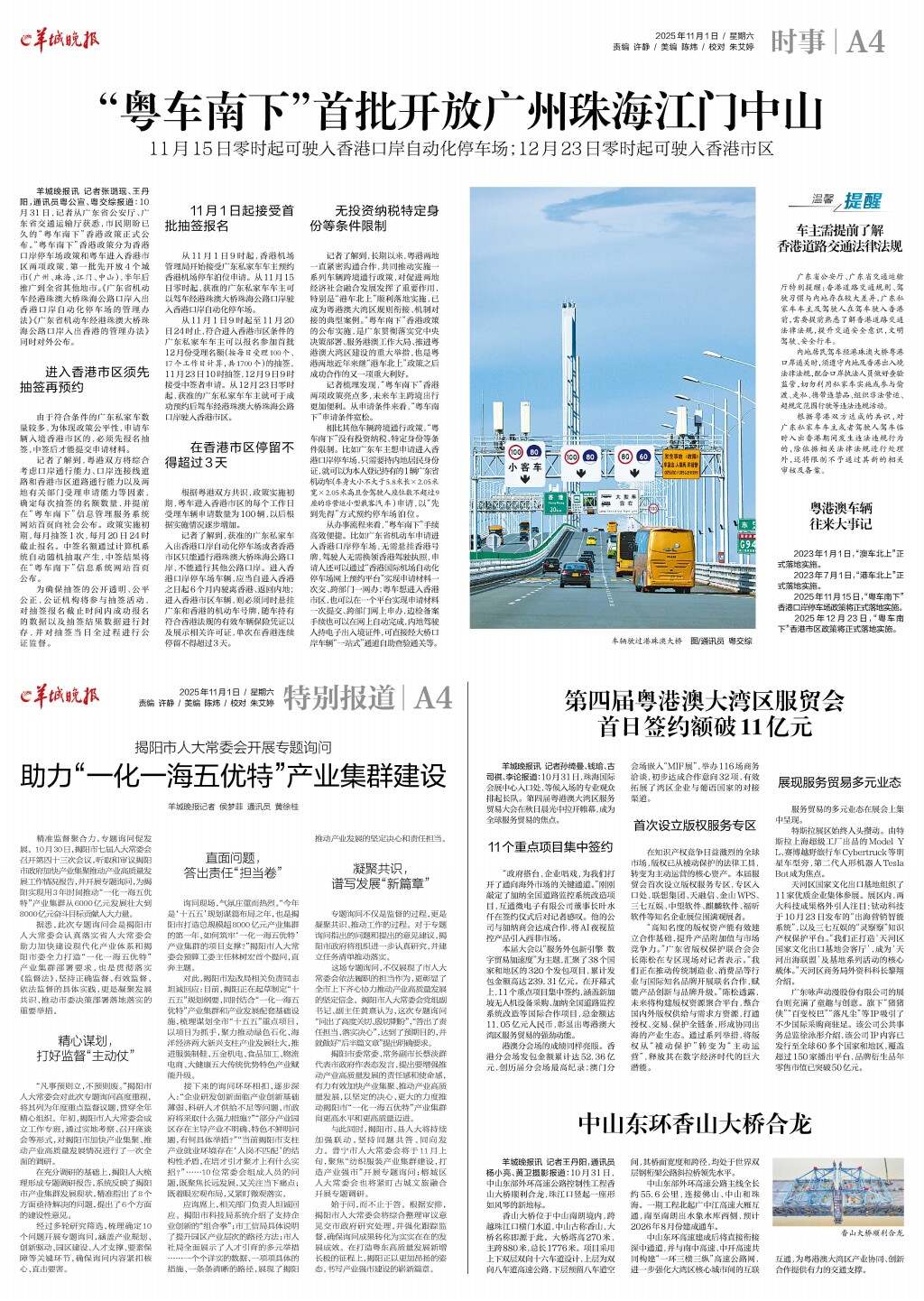 “粤车南下”首批开放广州珠海江门中山