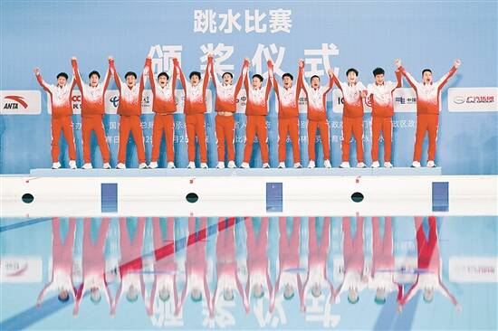 羊城晚报讯 记者龙希、冷霜报道:11月3日,第十五届全国运动会跳水项目继续在广东奥体中心游泳馆展开角逐。在男子团体项目的比赛中,谢思埸、陈艾森领衔的广东队斩获了跳水项目的第二枚金牌,实现广东跳水队男团八连冠伟业。