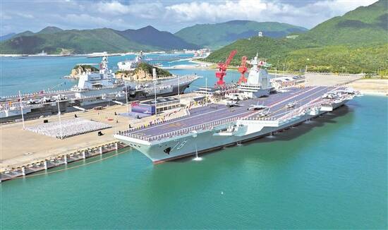 十一月的三亚,海阔天高,碧波浩瀚。军港内,福建舰踏海而立、满旗高悬,山东舰伏波相伴,来自海军部队和航母建设单位的代表2000余人在码头整齐列队,气氛隆重热烈。