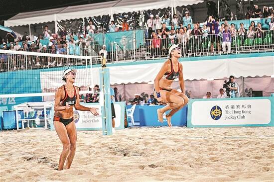 比赛现场气氛热烈。当排球在来回拉锯、队员轮番扑救,紧张刺激的场面让场边观众连声喝彩。每逢暂停休息间隙,DJ现场播放一首首经典港乐,瞬间引燃全场氛围,在场观众跟着熟悉的旋律欢声歌唱,其乐融融。香港市民翁先生告诉羊城晚报记者,他曾于2008年北京奥运会看过沙滩排球比赛,时隔十多年此次能在家门口再次看到比赛,感觉气氛非常棒。“粤港澳大湾区办这样的赛事,都是自己人,就是要团结起来共享共用,才能发挥最大的力量!”