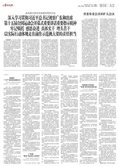 会议指出,在全党全国上下认真学习贯彻党的二十届四中全会精神,收官“十四五”、谋划“十五五”的重要时刻,习近平总书记亲临广东,先后到梅州、广州视察调研,听取省委和省政府工作汇报,出席十五运会开幕式并宣布运动会开幕。其间,习近平总书记发表一系列重要讲话、作出一系列重要指示,让全省上下倍受鼓舞、倍感振奋、倍添干劲,为我们奋力开创广东现代化建设新局面指明了前进方向、提供了根本遵循。要从政治、战略、全局的高度全面系统深入学习领会习近平总书记重要讲话、重要指示精神,深刻领会习近平总书记对广东山高水长的关怀厚爱,认真落实省委“1310”具体部署,聚焦经济建设这一中心工作和高质量发展这一首要任务,抓紧抓细抓实省政府各项工作,把增强“四个意识”、坚定“四个自信”、做到“两个维护”体现到一言一行、体现到时时处处、体现到工作成效上,为广东在中国式现代化建设的伟大实践中走在前列最大程度贡献力量。