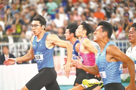 十五运会田径男子100米决赛,湖北选手李泽洋以10秒11成绩夺冠 周巍 摄