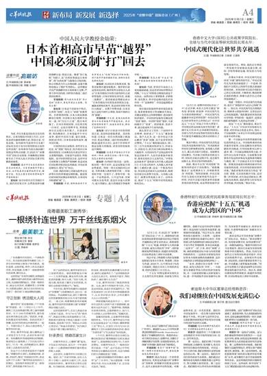 金灿荣:高市早苗在出任首相后不久,就在国会发言中,公然发表涉台露骨挑衅言论、错误言论。她拿“存亡危机”当借口,说“台湾有事就是日本有事”,将“台湾有事”与集体自卫权挂钩,暗示可能武力介入台海问题,这毫不掩饰地展示了她扩军的野心。这些做法不仅严重挑衅中国主权和领土完整、严重干涉中国内政,同样也在挑战二战后的国际秩序。