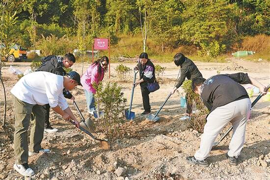 12月8日,由广东省林业局、羊城晚报报业集团(羊城晚报社)、中山大学体育部主办的“凝心聚‘绿’,运动同行”——2025绿美广东义务植树活动在广州市黄埔区举行,吸引了众多师生及志愿者踊跃参加。