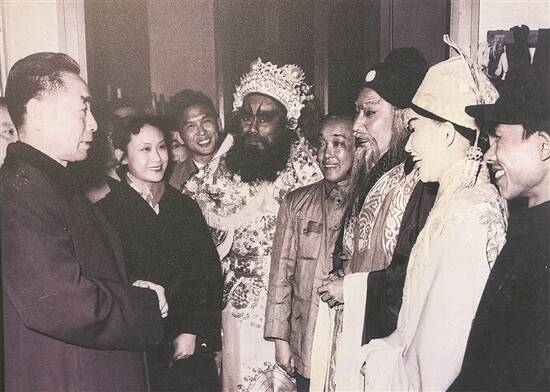 1956年5月初,刘少奇、周恩来等党和国家领导人在北京大众剧场观看了红线女、马师曾演出的《搜书院》。5月17日,周恩来总理在中南海举行的“昆剧《十五贯》座谈会”时谈道:“昆曲是‘江南兰花’,粤剧是‘南国红豆’,都应受到重视。”岭南粤剧就此有了“南国红豆”的美誉。1958年12月,马、红率团到武昌为中共八届六中全会演出粤剧《关汉卿》。红线女见到了毛主席,毛主席欣然提笔,为她写下“……活着,再活着,更活着,变成了劳动人民的红线女”的期许。