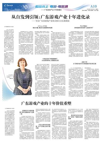 近日,羊城晚报记者独家专访了广东省游戏产业协会执行会长鲁晓昆。作为协会从筹备到壮大全过程的核心亲历者与推动者,她为我们揭开了这段波澜壮阔的产业史诗,并勾勒出下一个十年的壮阔蓝图。