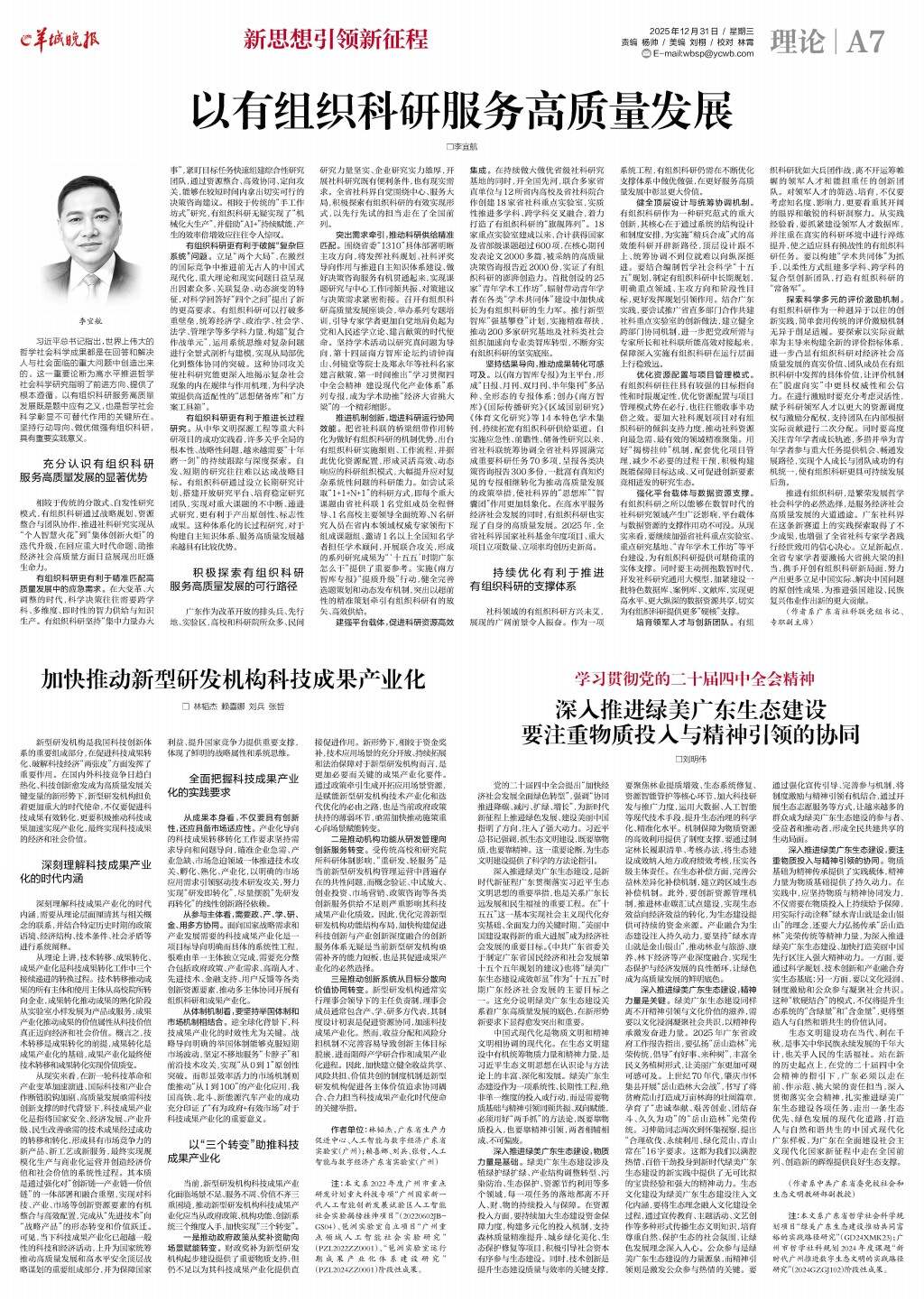 深入推进绿美广东生态建设 要注重物质投入与精神引领的协同