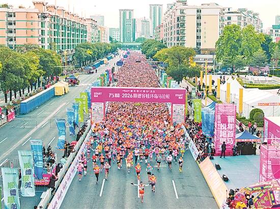 1月3日7时,万和·2026顺德容桂环岛马拉松在佛山市顺德区容桂街道海骏达城鸣枪起跑。来自全国各地的1.8万名跑者,共同用脚步绘就了一幅“体育+”融合发展的生动画卷。