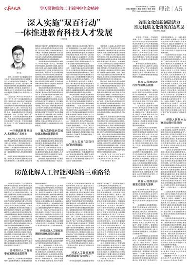 文化是一个国家、一个民族的灵魂。党的二十届四中全会通过的《中共中央关于制定国民经济和社会发展第十五个五年规划的建议》提出,“激发全民族文化创新创造活力”“实施公共文化服务提质增效行动”,释放出文化惠民的强烈信号。《中共中央关于进一步全面深化改革、推进中国式现代化的决定》明确要求,“完善公共文化服务体系,建立优质文化资源直达基层机制”。