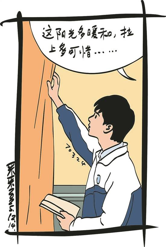 大发闷在彩票站读书,阳光晃得书页发亮,他抬手就想去拉窗帘。父亲看到了,说:“这阳光多暖和,拉上多可惜!”大发说:“太刺眼了,没法看书。”为了大发能读书,父亲向来事事顺着他,赶紧起身去拉窗帘。