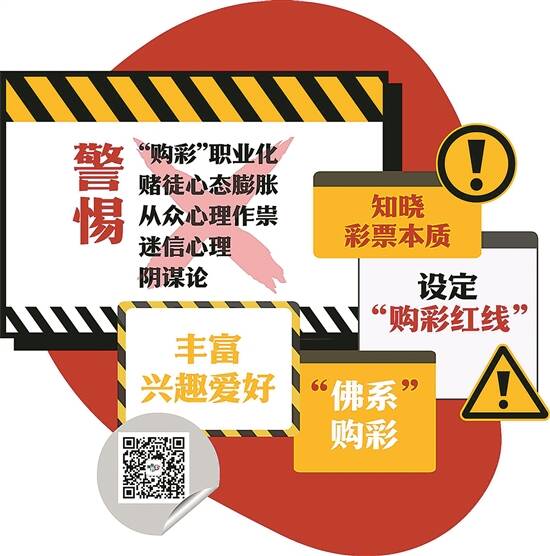 警惕迷信心理。有购彩者深陷“数字玄学”不可自拔,有人非要在开奖前最后一分钟冲刺投注。还有人晚上做了一个美梦、遇到一件幸事,便以为自己财运到了,购买彩票时就加大投注金额……这种行为本质是错误地将随机事件与超自然力量关联,违背了概率学基本原理。这种状态只会增加自己的心理负担,时间一长会变得焦躁不安,不利于身心健康。