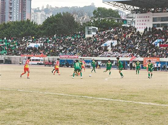 羊城晚报讯 记者欧阳志强摄影报道:1月31日下午,首届“英东杯”粤湘赣“红三角”城市足球联赛第二场赛事在韶关西河体育中心打响,东道主韶关队以2:1战胜郴州队。现场超2万名观众共同见证了这场精彩的对决,其中超8000名郴州球迷组团观赛。赛事同步联动2026年韶关市年货嘉年华暨迎春花市,实现体育激情与农文旅消费双向奔赴,奏响“红三角”区域协同发展新乐章。