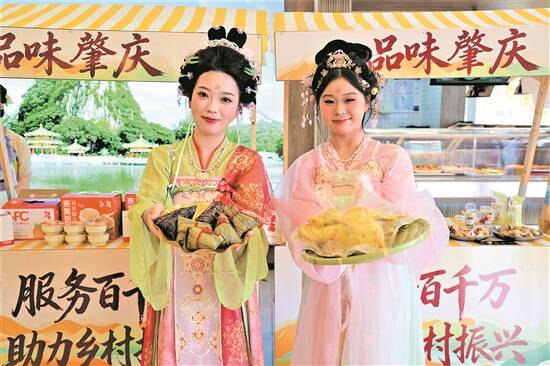 近日,在鼎湖服务区,肇庆裹蒸粽和封开杏花鸡等特产吸引旅客品尝、购买 通讯员 粤交集宣 张立希 供图