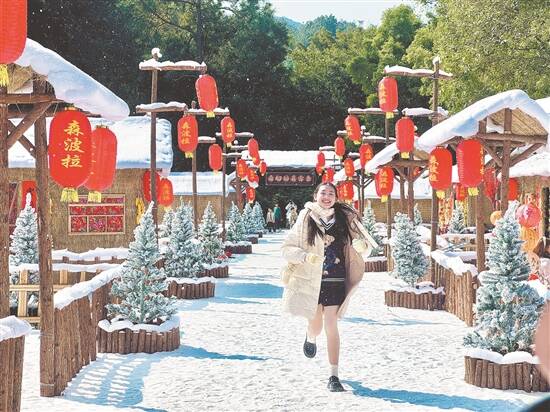 新年越近,“请到广东过大年”的口号也越响,广东文旅消费场景当然也越发多元而鲜活。南方特有的“百花丛中过大年”的体验北方不一定有,北方特有的“瑞雪兆丰年”,南方却一样可以有。就在岭南的青山绿水间,也能漫步雪中小屋、沐浴温泉暖意、参与热闹庆典——过一个既有雪花又有烟花的特别的新年。而且这里不仅有造雪机打造的“雪乡”,还有自然雪景里的天然雾凇或冰挂,滑雪、溜冰、冰雪索道,甚至是看南极企鹅,全部都有,任君挑选。