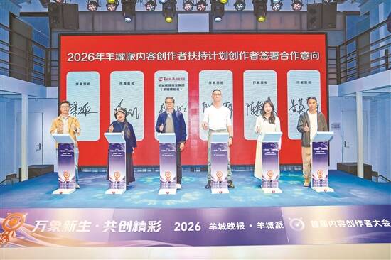为深度激活创作生态,赋能优质内容创作,构建可持续发展的内容共生体系,羊城晚报报业集团在会上发布《2026年羊城派内容创作者扶持计划》(以下简称“扶持计划”)。扶持计划面向深度纪实类、视觉叙事类、垂直专业类、青年创新类等四类内容创作者持续开放,将通过平台加持、专业培训、商业变现等全方位支持,激发更多用户的创作热情,也让更多才华与创意被看见、有回响。现场,扶持计划首批参与者与羊城晚报报业集团签约。