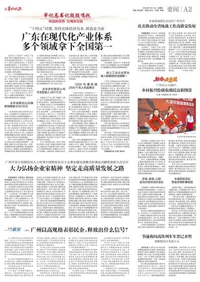 2月6日,广东召开“‘十四五’广东成就”系列主题新闻发布会。会上,广东省发展和改革委员会、广东省科技厅、广东省工业和信息化厅、广东省住房和城乡建设厅、广东省商务厅、广东省农业农村厅相关负责人介绍“十四五”时期广东现代化产业体系建设的情况和成效,并答记者问。