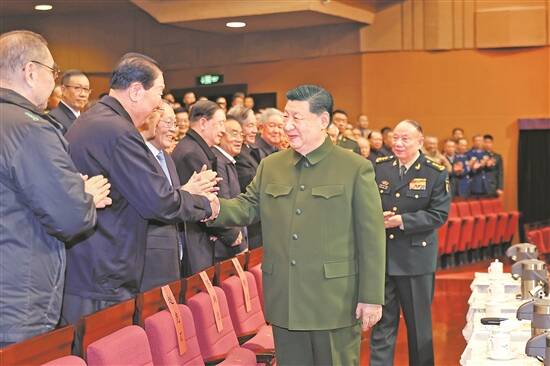 下午4时许,习近平来到老同志中间,全场响起热烈掌声。习近平同大家亲切交流、互致问候,关切询问他们的身体和生活情况,共同回顾过去一年党、国家和军队事业走过的不平凡历程、取得的重大成就。老同志们一致表示,要更加紧密地团结在以习近平同志为核心的党中央周围,坚持以习近平新时代中国特色社会主义思想为指导,深入贯彻习近平强军思想,深刻领悟“两个确立”的决定性意义,坚决做到“两个维护”,贯彻军委主席负责制,弘扬光荣传统、永葆政治本色,坚定信念、勇毅前行,为如期实现建军一百年奋斗目标、高质量推进国防和军队现代化作贡献。
