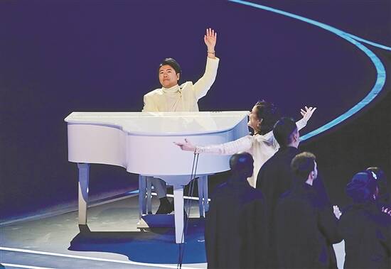 6日夜的圣西罗体育场,中国钢琴家郎朗携手意大利女歌唱家塞西莉亚·巴托莉和斯卡拉歌剧院儿童合唱团,共同演绎了《奥林匹克颂》。这是郎朗第二次登上奥运会开幕式舞台。