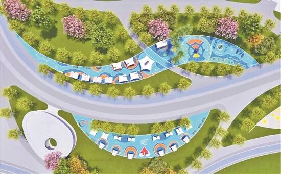 场地一(1103平方米)设置八大功能区。室外智能健身房配备高拉推举、腿部屈伸等八类双功能训练器,实现“测试-训练-测试-提高”的科学健身闭环。智能竞赛区提供上下肢竞速设备,支持线下比拼与线上云竞技。体能测试区融合13项身体能力测试,为科学锻炼提供数据支撑。互动娱乐区配备摇摇乐、传声筒等设施,增强健身体验趣味性。跳绳广场可同时容纳12人运动,配备智能跳绳计数系统。儿童玩乐区专为少年儿童设计安全有趣的运动空间。数据大屏展示区实时呈现场地使用情况及健身排行榜。轮椅/婴儿车停放区体现无障碍设计理念。