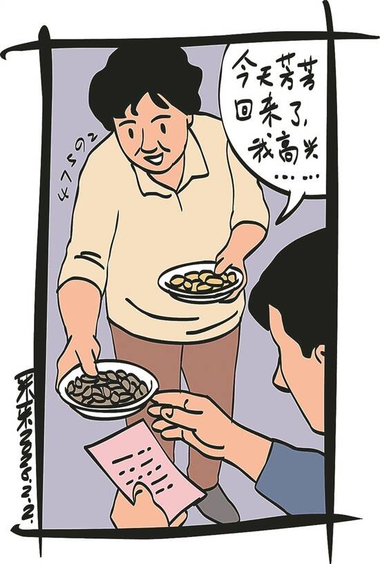 彩票站的张阿姨很热情,端茶倒水,还特意跑出去买瓜子花生,招呼着来彩票站研究彩票的人,说:“今天芳芳回来了,我高兴。大家一起吃啊!”