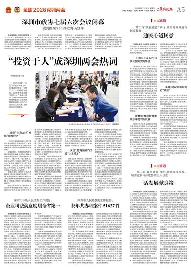 羊城晚报讯 记者宋王群报道:2月10日下午,深圳市政协七届六次会议第二场“委员通道”在深圳会堂举行。黄险峰、周文清、关恩赐、吕海阳、厉伟、张欣豪等6位深圳市政协委员相继发言,围绕迎接2026年APEC会议、破解城市发展瓶颈、深化区域开放协同等核心议题,贡献了一系列兼具前瞻性与实操性的“金点子”。