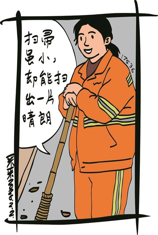张瑞是一名环卫工人,主要负责桃花岛公园片区,十年如一日坚守岗位,连笑容里都带着对工作的热爱。她总说:“扫帚虽小,却能扫出一片晴朗。”