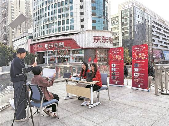 “这直播标题太长了,要精简”“这段词太硬了,划掉不念”“按照这个顺序我们再过一遍稿”……2月13日9时许,深圳华强北主街观景台来了7名年轻人,他们正在排练他们人生的第一场直播。其中,主播小徐和小廖分别是出生于1999年和1997年的年轻公务员。