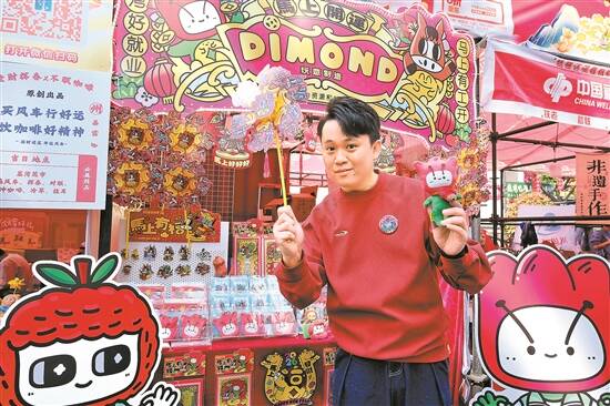 在2026年广州荔湾传统迎春花市,胡凯麟在“广州阿棉”等文创角色基础上再“加码”,设计了一系列与马年相关的福贴、冰箱贴、风车等,在花市举办期间受到欢迎,营业额超4万元。记者了解到,胡凯麟还不断壮大“南粤联萌”家族,将具有岭南特色的文创销往海外。