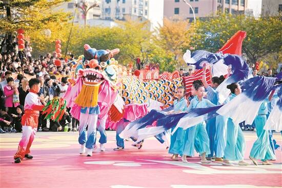 展演现场人头攒动、暖意融融,观众纷纷举起手机、相机记录精彩瞬间,浓浓年味与市井烟火气交织相融,勾勒出喜庆祥和的新春画卷。不少外地游客被这场独具特色的非遗盛宴深深吸引、倍感震撼。