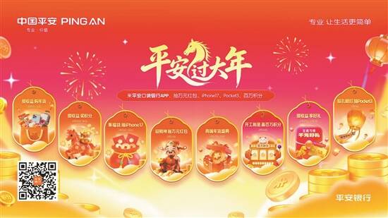 新春佳节,年味浓郁。为陪伴广大客户度过一个温暖、祥和、富有获得感的春节,平安银行于2月9日正式启动了“平安过大年”主题活动,将持续至3月3日元宵节,贯穿整个春节假期,旨在通过一系列丰富多彩、惠民利民的线上互动与福利放送,陪伴广大客户在浓浓的年味中感受金融服务的温度与关怀。