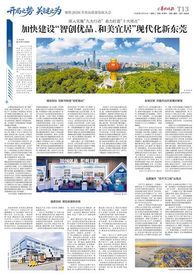 擦亮“制造美学之城”城市产业名片,东莞把品质提升和品牌打造作为加快产业转型升级的重要抓手,推动东莞制造向价值链高端迈进,加快建设具有国际竞争力的现代化产业体系,支撑经济向新发展、向上跃升。2026年,东莞将“一号文”的主题确定为“品质提升、品牌打造”,系统谋划13条举措,以质量锻造品牌,以品牌赋能产业,围绕“质量三强一基”建设,推进品质提升四大计划,加快推动“东莞制造”提质创优。据介绍,“质量三强一基”建设是质量强市建设的核心任务,质量强企事关增强经营主体竞争力;质量强链决定“8+8+4”现代化产业体系的韧性与安全水平;质量强镇着眼镇域经济特色和高质量发展;质量基础设施则可为质量提升提供技术支撑。