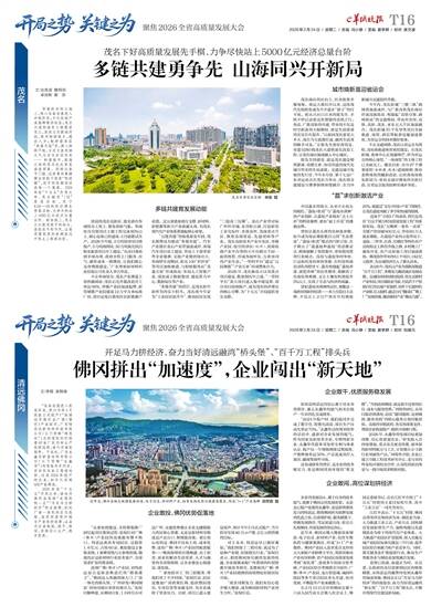 华南钛谷的工地上,核心设备安装进入冲刺阶段,千亿钛锆产业集群雏形初显;茂名大道快速化工程提前完工,座座立交拔地而起,路网畅联城乡、通达八方;柏桥服务区“美荔天地”里,游人络绎不绝,乡村文旅的烟火气与活力扑面而来…… 岭南春早,南海之滨的茂名处处皆是奋进图景。刚跨过春节门槛,这座粤西重镇便全面按下发展“快进键”,实干的热潮涌动在每一个角落。2026年是“十五五”开局之年,茂名锚定“132”发展目标,定下4.5%—5%的经济增长预期目标,力争尽快站上5000亿元经济总量台阶。新征程上,茂名正以敢闯敢干的劲头、真抓实干的作风,让高质量发展的春潮在这片热土上奔涌向前。