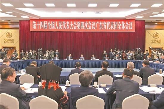 羊城晚报讯 3月6日下午,十四届全国人大四次会议广东省代表团在住地举行全体会议,继续审议政府工作报告,审查“十五五”规划纲要草案,来自111家境内外媒体的277名记者到会旁听。会议开始后,中外记者们自由进入会场内采访,近距离记录和报道代表们审议报告、审查大会文件时的发言;在媒体提问环节,到会记者踊跃举手,聚焦中国式现代化的广东实践,围绕“十五五”和今年经济社会发展进行设问,现场互动频繁,气氛热烈。黄坤明、孟凡利、张虎、覃伟中、王晖、曾进泽、何小鹏等代表分别作答,结合履职实践和工作实际谈认识、说变化、话举措,全方位介绍了全省上下围绕实现习近平总书记赋予广东的使命任务,坚定不移挑好大梁、全面推进强省建设的阶段性成效和各项谋划部署。黄楚平代表主持会议。