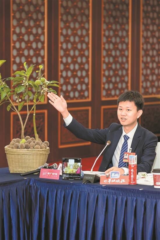 “去年两会我带了一棵开花的化橘红树苗来,今年我专门带了一棵结果的树苗,开花结果背后,正是1600多年化橘红产业老树发新芽、乡村振兴结硕果的生动写照。”廖志略笑着向在场的人大代表和媒体讲述着这棵树苗背后的百亿产业。