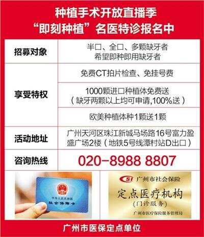 种植牙是目前医学界首推的缺牙修复方式,但许多高龄老人因为怕疼、担心安全等原因而迟迟不敢种牙。目前,羊城首届“种植手术开放季”公益科普活动正火热进行中,将公开直播四大高龄种牙专项技术。其中,精工即刻种植技术,能够实现即拔、即种、即用,当天种牙当天就能正常饮食,本周末“即刻种植”三甲名医专项特诊限额30名,缺牙市民可拨打020-89888807预约一对一亲诊,多颗缺牙可免费赠送进口种植体1颗,并享受欧美种植体种1送1特惠。 当天种牙、当天戴牙、当天使用 “精工即刻种植”引领高龄种牙革命 据了解,传统种牙需要3-6个月的愈合期,这对于长期饱受缺牙之苦、希望尽快种牙、用牙的高龄市民来说难以接受。“精工即刻种植”作为开放直播的核心技术之一,一天时间就可以解决困扰十几年的缺牙问题,因此备受缺牙市民关注。 羊城种植名医苏凯主任介绍,“即刻用”种植技术已经非常成熟,采用即刻种植,植体植入后便迅速与牙槽骨的结合,患者当天就可以正常饮食,这一点对于半口、全口无牙患者来说,尤为重要。除此之外,即刻种植还具有4大优势: ① 轻松无痛:微创植入植体,创伤小,愈合快; ② 节省费用:治疗周期短、手术次数少,治疗费用相应减少; ③ 自然美观:拔牙后即刻植入,牙龈不会萎缩; ④ 坚固耐用:有效减少牙槽骨的生理性吸收,“扎根”更牢固。 七旬老人无痛种好半口牙、即刻啃苹果 本周末“即刻种植专项特诊”限时报名中 家住天河区的梁叔是“精工即刻种植”的受益人之一,因为上半口牙仅剩三颗残根,活动假牙戴了10多年,使用极不舒服,所以一直想换种植牙,但是却又害怕疼、担心三个月的恢复期吃不好饭。 针对梁叔的缺牙情况,手术医师苏凯主任通过德国3D数字化设备,完整获取牙槽骨等数据,个性化设计种牙方案,通过“微创即刻种植”及“ALL-ON-N”技术,实现即拔即种,仅30分钟就完成了半口牙种植手术。梁叔术后表示,手术完全不痛,术后连止痛药都没吃,当天就啃起了苹果,还大方分享了享受美食的照片。 据了解,作为“种植手术开放季”活动内容之一,主办方将在本周六、周日举办“即刻种植专项特诊”,报名可获得院长及种植主任一对一亲诊,名额仅限30个,有需要的市民须抓紧时间报名。