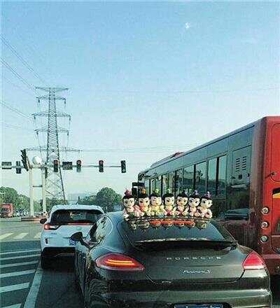 手握小旗的蜘蛛侠、骑着恐龙的超人、挥舞手臂的蝙蝠侠……此类玩偶以往大多出现在私家车内,随着商家不断追求“创新”,近期也从车内“爬”到了车外,还有车主甚至在车顶码放了一排玩偶,车到之处吸睛无数。对此,交警部门表示,在车体上放置玩偶是对车辆外形轻微改变,不仅违法,一旦引发交通事故还要承担相应责任。 “车顶玩偶”网上热卖 据央视新闻报道,近期在道路行驶中,类似车顶黏葫芦娃等玩偶的案例比比皆是。昨日,记者打开网购平台搜索“车顶玩偶”发现,很多商家都在出售“车顶玩偶”。琳琅满目的玩偶售价从十多元到几十元不等,一些成套的则达上百元。 记者注意到,“车项玩偶”销量非常不错,一个月的销售量少则数百件,多则达到两三万件。 在商家的商品展示中,“车顶玩偶”安装的位置可不只在“车顶”,有的安装在后尾箱上,有的粘在车窗上,有的紧贴在后视镜上。 记者观察发现,大多“车顶玩偶”都有一个底座,粘贴时撕开底座保护膜后即可将底座粘贴在想要的位置。玩偶与底座有一个方便拆分的卡扣,底座粘贴后位置就固定了,玩偶则可以拆卸,或者更换。 广州一黄姓汽车用品销售商告诉羊城晚报记者,“车顶玩偶”不防水不防盗,在高速公路或下雨时行驶,很容易掉下来。 车顶装玩偶属违法 记者了解到,近日,有广州市民在市区发现了一款蓝色“蜘蛛侠”安坐车顶的身影。有市民表示,“车顶玩偶”很吸引眼球,可能会分散后车司机的注意力。还有市民表示,如果在高速公路上行驶,这些玩偶一旦掉落,很可能引发交通事故。 记者查询了解到,对于粘贴车身玩偶,我国多部法律法规中均有相关涉及:《道路交通安全法》第16条规定,任何单位或者个人不得擅自改变机动车已登记的结构、构造或者特征;《道路交通安全法实施条例》第62条规定,驾驶机动车不得在机动车驾驶室的前后窗范围内悬挂、放置妨碍驾驶人视线的物品,违法者将处罚款50元;《机动车登记规定》第57条规定,擅自改变机动车外形和已登记的有关技术数据的,由公安机关交通管理部门责令恢复原状,并处警告或者500元以下罚款。
