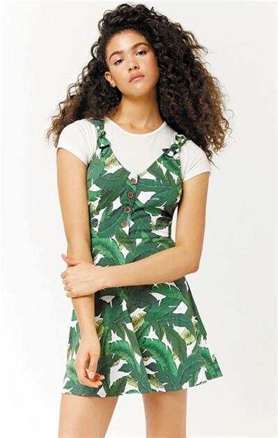 forever21棉质印花无袖V领连衣裙▶ |