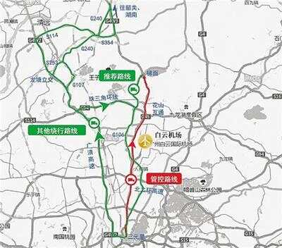 机场高速路段 4月28日至4月29日,机场高速北行黄石南出口、白云新城出口以及新市入口、黄石北入口将采取临时封闭管制,预计北环高速、内环路、机场路、三元里大道、解放路、广园西路等路段交通压力将增大,请广大市民视情绕行。 解放路和机场路北行车流:建议行驶机场路,北行前往黄石路或云城西路往白云新城方向。 三元里大道和广园西路北行车流:建议绕行云城隧道、机场路,北行往黄石路方向或进入云城西路往白云新城方向。 内环路:A线车流:建议由机场路出口出,绕行通过机场路(机场立交),北行前往黄石路方向或通过云城西路前往白云新城方向。 B线车流:建议由广园西放射线出口出,通行广园西路、云城隧道、机场路,北行前往黄石路方向或通过云城西路前往白云新城方向。 北环高速公路: 东行车流:建议由广花收费站出口出,绕行广园西路、三元里大道,前往黄石路方向,或绕行远景路、机场路、云霄路前往白云新城方向。 西行车流:建议由广园收费站出口出,绕行广园中路、白云大道南前往白云新城方向和黄石路方向。 华南快速路段 4月29日10时至12时,华南快速南往北方向石门堂隧道南侧入口至北侧出口路段实施借用对向车道通行,并视实时交通情况对华南快速北往南方向太和立交(华南快速与京珠高速交接出口位置)直行车道、西往南匝道及东往南匝道实施交通管控。 在石门堂隧道实施借用对向车道通行期间,华南快速路北往南方向车流建议在太和立交转北二环绕行进入市区,或选在钟落潭收费站下高速后沿广从公路、白云大道进入市区。请广大市民视情绕行: 京珠高速(钟落潭站)-广从公路-广州城区 京珠高速(太和互通)-北二环高速(石湖立交)-G105-广州城区