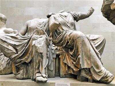 两个女神坐像飘逸的裙摆被艺术家雕刻得栩栩如生 |