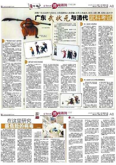 □文/图 李开周 自从唐朝创立武科考试以来,一千多年间,广东总共出过五个武状元,其中清朝就占了四个。 这四人分别是: 广东揭阳人林德镛,康熙六十年(1721年)得中武状元。 广东长乐人(今梅州市五华县)李威光,乾隆三十七年(1772年)得中武状元。 广东海阳人(今潮州市潮安区)黄仁勇,嘉庆元年(1796年)得中武状元。 广东南海人姚大宁,嘉庆六年(1801年)得中武状元。 如今,江湖上还流传着这几位武状元的传说。 一、 广东武状元的几段传说 传说林德镛父母双亡,是个孤儿,靠卖苦力养活自己。因为偶然给一个进京赶考的武举当仆人,又因为武举到京城后生了病,不能参加考试,林德镛替他上考场,结果中了状元。 传说康熙喜爱林德镛,不但宽恕了他替考的罪过,还让他当上贴身侍卫,将他接入皇宫,跟自己同吃同睡。 皇亲国戚和亲贵大臣见林德镛如此受重用,人人羡慕嫉妒恨,密谋在他饮食里添加蜂蜡。当时人们认为,长期食用蜂蜡会让人看起来油光水滑,实则内虚,且饮水易膨胀,时日久了,能要林德镛的命,相当于慢性中毒。有一回康熙打猎,一只白兔带着箭跌到水里,林德镛自告奋勇下水去捞,由于天冷水冷,肚子里的蜂蜡凝到一块儿,把他给毒死了。 人们还传说,长乐人李威光进京参加武科考试,手提一把重达百斤的大关刀上场,耍了一套刀法,如猛虎下山,如蛟龙入海,武艺精湛,评为第一。殿试那天,乾隆皇帝亲自监考,李威光将一个三百斤重的石狮子举过头顶,打破了纪录。他把石狮子放回地上时,手一滑,石狮即将掉落在地,他眼明手快,赶在石狮落地之前,飞脚将其踢出一丈来远。乾隆问道:“你这是什么招式?”李威光答道:“这叫狮子滚球。”乾隆龙颜大悦,钦定为武状元。 人们又传说,海阳人黄仁勇文武双全,先考中文秀才,后来跟岳父习武,遂听从岳父劝告,弃文从武,苦练十年,十八般武艺样样精通,终于在嘉庆年间考中武状元。 这些传说肯定不同于真实的历史,但也不能说全是空穴来风。 从康熙二十九年(1690年)起,清朝武进士名列前茅者,一般都会被皇帝选作侍卫。所以林德镛考上武状元以后,确实有可能会给康熙当侍卫,只不过不可能有机会与康熙同吃同住罢了。别说是一个侍卫,就算是官居极品的大学士,就算是贵为亲王,也没有资格入宫居住,更不可能跟皇帝睡在一张床上。 清代考取武进士,必考弓马和刀石。刀是大刀,按照重量分为三种:八十斤、一百斤、一百二十斤,考生可以挑选一种。石头也是大石头,也按重量分为三种:二百斤、二百五十斤、三百斤,也让考生自选一种。所以,长乐武状元李威光手提大关刀上场和举起三百斤石狮子的传说都不算离谱。唯一需要纠正的是,清代考生要举的不是石狮子,而是石锁。石锁上面有一个柄,双手能穿进去,将石锁提起来,提到胸口位置,然后腾出一只手,托牢石锁底部,向左旋转九十度,再向右旋转九十度,即可完成这项考试,没必要举过头顶。 二、 清代武生的科考历程 我们知道,古人想考文状元,难度很高,道路很长。 以清朝为例,考生们首先要通过本县官员主持的县试,再通过本府官员主持的府试,然后还要通过本省学政主持的院试,三项考试全部合格,才能获得秀才身份。 等到乡试年(通常三年一次),秀才再进省参加乡试,取中者即为举人。举人再进京参加会试,通过后再参加殿试,如果在殿试中没有出现大的差错,才能成为进士。而状元,就是进士当中的第一名。凡是能考中状元的人,文化水平和书法水平必定很高,运气也必须出奇的好,因为进士的名次最终是由皇帝来决定的,皇帝的个人偏好往往比实际的考试成绩还要重要。 考武状元呢?程序其实差不多,在清朝同样要通过县试、府试、院试、会试和殿试,才有机会成为武状元。 府县级别的考试不太严格,朝廷不会专门委派大臣去监考,知县和知府可以决定成绩优劣。到了院试这一级,本省学政就要出来当主考官了。学政是朝廷派往各省主持文化教育工作和秀才考试方面的大员,平常在省会办公,到了考试的时候,必须巡行州县,依次考察和主持各个州县的文秀才考试和武秀才考试。 清朝重文轻武,武秀才考试比文秀才考试要晚,学政考完文秀才,定出名次,贴出榜单,才会考武秀才。鉴于学政都是文官,不一定懂武艺,所以还要请一个武官来当副主考。这个武官必须在本地任职,级别必须是副将、参将或者游击,籍贯必须在外地(防止作弊)。 学政和武官考武秀才,先考外场,再考内场。外场考武艺,分为马射、步射和刀石三项。马射即马上射箭,步射即平地射箭,刀石就是耍大刀和提石锁。这几个科目有先后次序,先考马射,再考步射,最后考刀石,前一个科目通不过,直接取消考试资格,后一个科目就不用参加了。三个科目全部及格,可以参加内场考试。内场即笔试,与文秀才们考诗赋、对策、八股文不同,武生们只需要默写一遍《武经》,默写要全对,字迹要规范。内外两场全部通过,即成武秀才。 武秀才参加乡试,一般在十月举行,跟院试一样,也分内场和外场。一般在十月初七和初八考马射,十月初九和初十考步射,十月十一考刀石,然后休息三天,十月十四入内场参加笔试,笔试内容也是《武经》。 乡试的考试制度比院试更严,但基本规则是一样的,上一个科目过不了,也不能考下一个科目。内外场所有科目全过,考官们还要排定名次,根据朝廷分给本省的武举指标,将排名靠后的考生淘汰掉,剩下