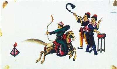 武举考试:策马射箭(清代通草画) |