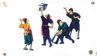 武举考试:举大石(清代通草画) |