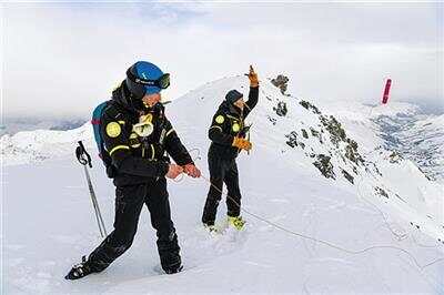 今年年初,日本、瑞士、美国已有好几个滑雪场连续因附近出现雪崩而导致事故。为安全起见,一些滑雪场会提前进行勘查,预防雪崩。图中是法国瓦托伦斯滑雪场的巡逻员在使用205公斤的炸药爆破,对滑雪场进行防护。 |