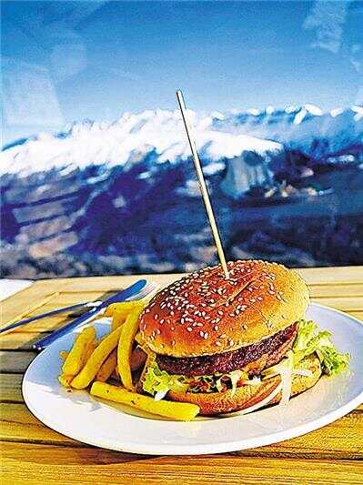 瑞士瓦莱州阿莱奇地区的冰川滑雪场内,在优雅干净的酒吧里,还可以边赏窗外雪景,边享大厨出品的“高山汉堡”等美食。 |