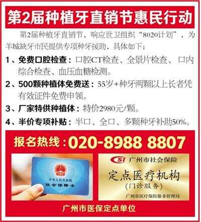 第2届种植牙直销节由“种好牙·享口福”公益种牙项目组、广州市某知名医保定点口腔医院、全球7大种植体厂商联合举办。据了解,短短一个多月的时间,主办方组织医护志愿队走进街道社区,开展近20场口腔义诊及讲座,上千市民报名咨询并成功种牙,真正实现百姓种牙、厂家补贴。目前,该活动即将落下帷幕,500颗免费种植体即将送完,缺牙市民需抓紧时间,报名电话020-89888807。 “公立三甲名医一对一特诊”,七八十岁高龄缺牙轻松种 据悉,为解决高龄老人种牙难题,第2届种植牙直销节主办方特别成立“高龄种牙特诊专家组”,包括潘广嗣院长、苏凯主任、谢晖主任等均曾任职于公立三甲口腔机构,临床经验均在20年以上、种牙案例超过10000例,在数字化种植、即刻种植、半口全口种牙、疑难复杂种植方面经验丰富。潘广嗣院长介绍,针对高龄老人缺牙多、身体耐受力差、牙槽骨条件差等种牙难题,我院4大高龄种牙专项技术,已助上万名七八十岁高龄长者微创无痛种好牙。 》微创无痛种植:采用美国舒适无痛麻醉、微小切口技术,创口小、出血少、恢复快,尤其适合怕疼或耐受力差的长者。 》ALL-ON-N桥式种植:采用冠搭桥修复方式,只需种4 ~6颗即可恢复半口牙、8~12颗恢复全口牙,大大减少创伤及种牙费用。 》一日得即刻种植:拔牙、种牙一次完成,免除二次手术,还能降低植骨费用,实现当天种牙当天用。 》骨增量种植技术:规避牙槽骨骨量不足问题,少量植骨甚至不植骨也能种,降低高龄种牙门槛。