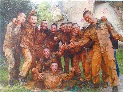 何海洋(后排右四)在特种作战旅接受魔鬼训练,成为一名特种兵 |