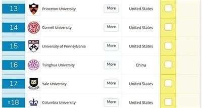 清华大学排名超过耶鲁大学和哥伦比亚大学(QS排名官网截图) |
