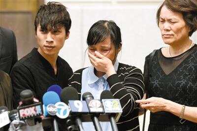 ▲24日,在美国伊利诺伊州,章莹颖的家人在陪审团裁决宣布后对媒体讲话 新华社发 |